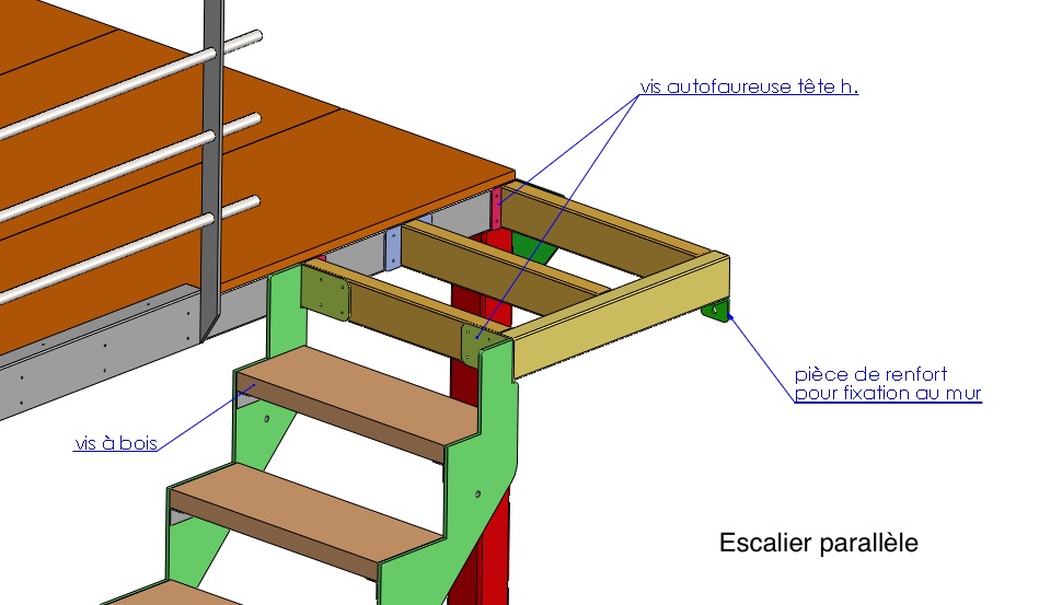- 2-3 - Pour les escaliers, il est possible de positionner l'escalier parallèle à la mezzanine.